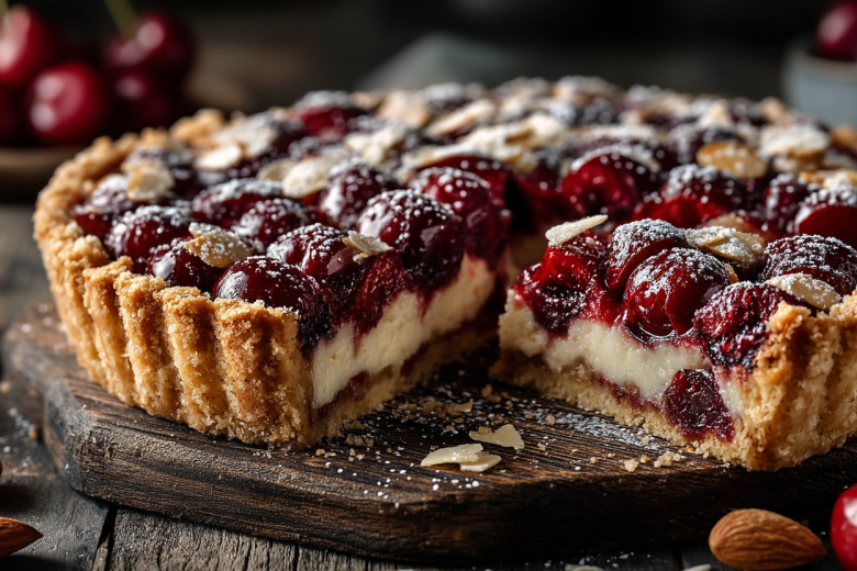 Черешня — королева летнего стола, и этот пирог создан, чтобы подчеркнуть её чистый, сладкий вкус. В отличие от вишни, она почти не даёт сока, что позволяет добиться идеальной текстуры.